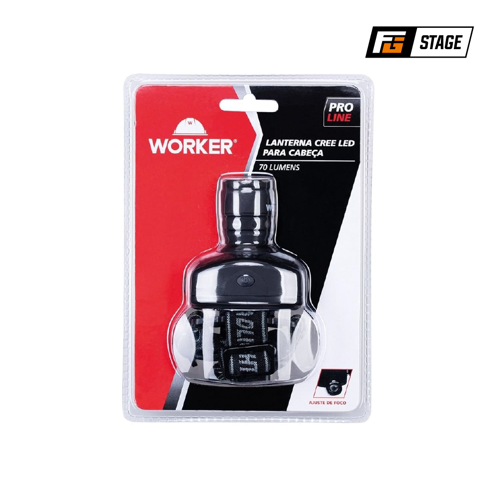 A Lanterna Cabeça Cree LED, da Worker, possui botão liga/desliga com 3 opções de fluxo luminoso: luz alta, luz baixa e intermitente. Conta também com inclinação do foco ajustável em até 90°, cinta regulável para fixação na cabeça ou capacete.